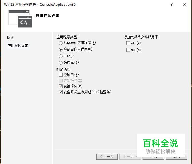 接下来在应用程序设置界面中设置应用程序为空项目,如下图所示