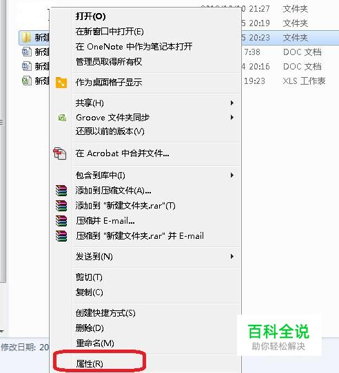 首先,我们找一个文件夹(文件同理)来演示,如图所示,我们右键点击它,然后选择“属性”。