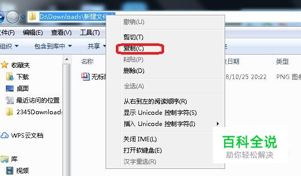 然后,如图所示,点击一下地址栏,就能选中该文件夹所在的路径,我们右键点击,选择复制就可以了。