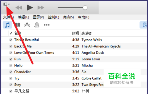 打开iTunes,点击左上角的符号