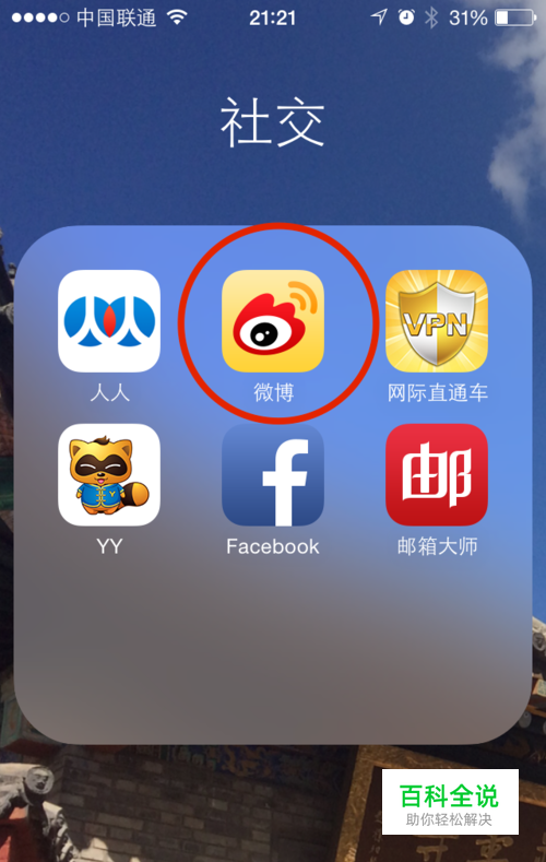 首先在app中下载最新版本的微博。 如下图所示,点击进入微博。