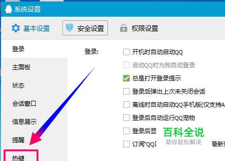 登录QQ,打开QQ主面板,点击下面的[系统设置]进行设置