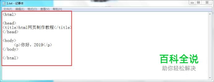 修改后缀名 把记事本修改后缀名为.html,如下图所示: