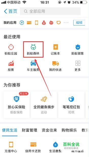 首先打开支付宝软件,接着点击【蚂蚁森林】。