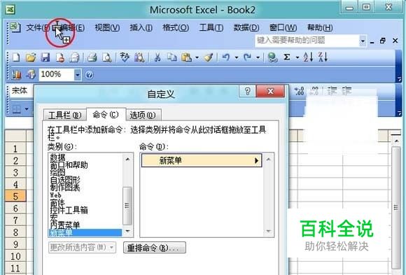 Excel表格的35招必学秘技之建立“常用文档”新菜单。工作时我们经常会在盘符中找到并打开我们常用的一些工作表格,其实我们可以在菜单栏上新增一个“常用文档”菜单,将我们经常会用到的一些工作簿放进去,日后每当用到时可以直接单击Excel菜单栏来调用这些表格。 操作步骤 1、 右键单击“菜单栏”,在弹出菜单中选择“自定义”命令; 2、 在弹出的“自定义”对话框中进入“命令”选项,然后在下面的“类别”中选择“新菜单”,再将右边“命令”下的“新菜单”拖拽到菜单栏上; 3、 单击“更改所选内容”按钮,在弹出菜单中“命名”后面输入菜单名称,如:“办公族Excel教程”; 4、 在“类别”中任意选择一个类别,如:“文件”选择“打开”然后将其拖拽到“办公族Excel教程”下拉框中; 5、 再次单击“更改所选内容”将“打开”命名为你常用表格的名称,如:“工资表”; 6、 右键点击“工资表”,然后在下来菜单中选择“分配超链接”中的“打开”; 7、 在弹出的“分配超链接:打开”窗口中找到常用的表格文档,最后确定。 按照上述方法,我们可以多添加一点常用的工作簿,以后我们就不需要再进入盘符找这些表格文档了,直接从菜单栏中打开就OK了!原标题:Excel表格35招秘绝:3、建立“常用文档”新菜单
