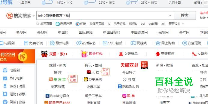 首先我们打开一个浏览器,在浏览器里面输入“Ie9官方浏览器下载”,然后进入搜索界面。。