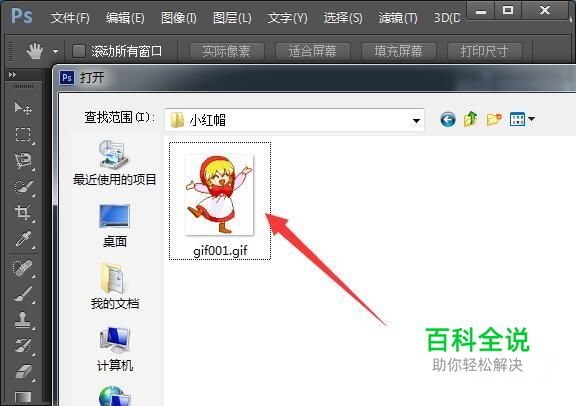 首先,打开PS CS6,按Ctrl+O弹出打开对话框,找到要加文字的GIF动态图打开。