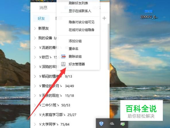 进入之后,在联系人页面右击一下,选择“好友管理器”,如图所示。