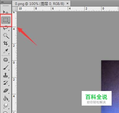 打开图片之后在工具箱内找到矩形选框工具,如图所示: