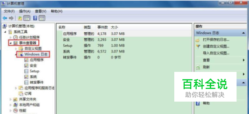 2、接着弹出的就是“计算机管理”窗口,依次展开“事件查看器”-“Windows日志”,下拉目录中即是前面说到的五类Windows日志。在这五类日志中,其中系统日志记录了开关机的时候,进程号是6009、6006你可以打开你的日志看看是不是能知道你几点开机和关机。