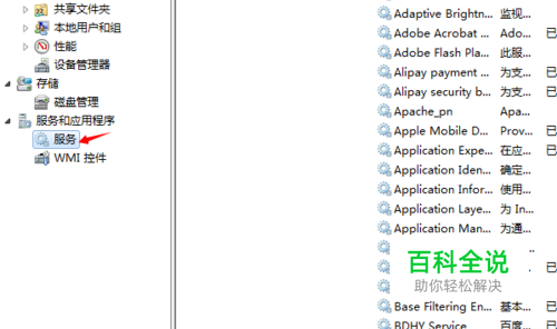 在左侧列表,点击 服务