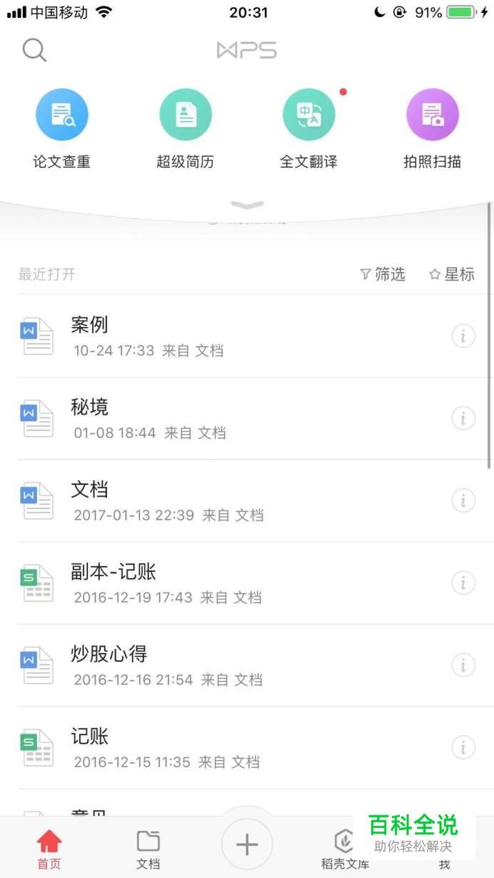 然后点击屏幕下方的文档,如下图所示。