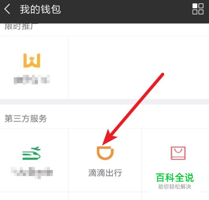 在钱包页面,找到并点击打开‘滴滴出行’。