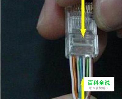 把网线按照“白橙-橙-白绿-蓝-白蓝-绿-白棕-棕”的顺序依次排列好,并插入水晶头内。确保网线都插接到位。