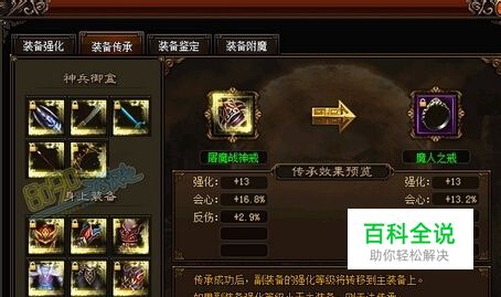 8090游戏《千年盛世》是一款pvp为主的游戏,玩家之前的pvp强弱,除了武学,境界占主导之外,重要的还有装备,装备中不仅可以强化与鉴定,最重要的就是要废物利用,将淘汰的装备甚至系统赠送的垃圾装备的强化转移到新的装备上,这就是装备的传承系统。那装备传承怎么操作,需要什么材料呢? 传承就是通过某一种方式,在用最少的损失,最大的获益情况下,进行的一项神奇的操作。这是一项目前来说,很特殊的方式,尤其是在8090游戏《千年盛世》中,拥有了这一项技能,你的战斗力将永不落败。 装备传承属于装备锻造的一种,传承你现有强化的装备等级给其他的装备无论多么高级都可以传承。首先将现有的高强化装备放在左侧,需要传承的装备放在右侧,使用道具刻命石就可以进行传承了,传承的成功率只有20%,没有任何vip的加成哦,所以一传承成功,废品也会成宝哦。