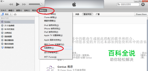 首先,打开itunes,点击帮助选项卡,选择下拉菜单中的 检查更新。