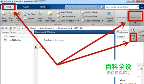 首先打开MATLAB,在home功能中找到ERSOURCES(资源),点击help,如图所示