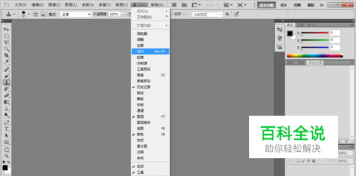打开PS软件,点击菜单栏中的【窗口】,选择【动作】,快捷键为ALT+F9