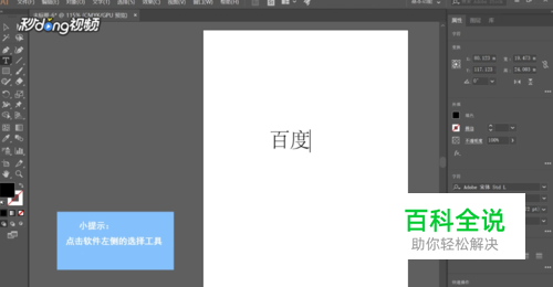 点击属性,调节文字大小。输入文字内容,点击软件左侧的选择工具,全选文字。