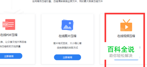 浏览器搜索视频压缩,找到并打开在线视频压缩的网站,点击页面中的在线视频压缩下立即使用的按钮。