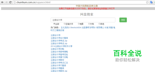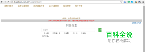 打开百度云盘搜索引擎地址:chumhum.com.cn/sopancn.html。界面简洁清爽,非常实用,经常有大家分享的经验帖等,可以非常有效的帮助大家学习生活。