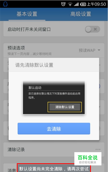 打开UC,进入“设置”,点“设为默认浏览器”按钮,它会弹出对话框让你去清除默认设置,接着弹出系统自带默认浏览器的清除数据界面,然后清除数据,但是返回的时候会发现根本没有成功。这说明你的手机带有系统默认软件保护功能,需要运用其它方法进行设置。
