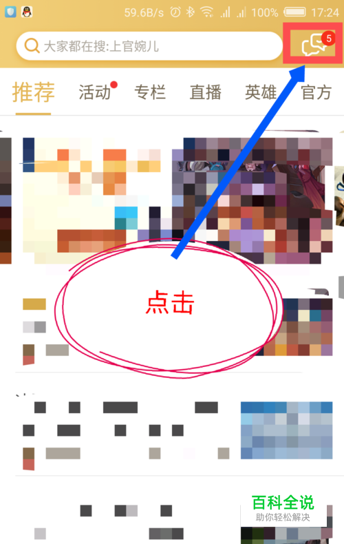 打开王者营地后,在打开的软件的界面,点击右上角的消息提醒图标选项。如图所示