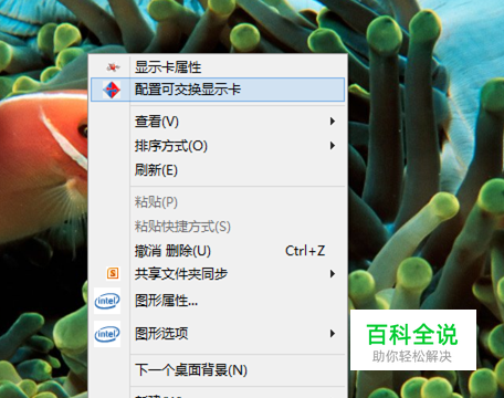 关于游戏的卡频:首先你要先安装Intel的显卡驱动,之后再安装AMD 8670的独显驱动,这个顺序一定不能反。正确安装后,桌面单击鼠标右键,会有下面的选项:
