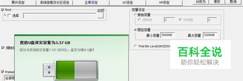 然后找到有关“调整U盘容量”相关设置界面,根据“U盘鉴定器”所检测到的实现容量进行设置。