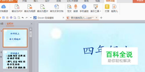 在打开的文档上方寻找“特色功能”并单击