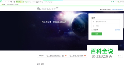 搜索“微信公众平台”,在登陆界面输入用户名和密码,点击登陆。 出现如图二维码,用微信扫描二维码验证,管理员的微信会收到相关信息,验证通过后即可登陆到后台。