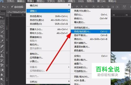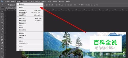 打开一种需要进行调色的风景或者人物的照片,如图所示,点击PS软件中的 图像---调整命令