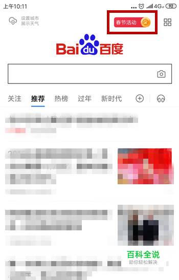 打开百度浏览器,在首页的右上角可看到【春节活动】,点击打开春节活动。