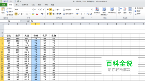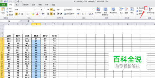 选中其中的一列,如:物理成绩