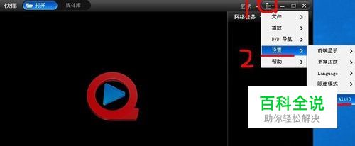 安装好快播后,打开快播软件,要进行一个设置,才能保证快播软件有搜索框。如下图所示,我们看到在快播软件界面上是没有搜索框的。我们依次单击下图所示的菜单按钮(红框1)-“设置”菜单(红线2)-“选项”(红线3)