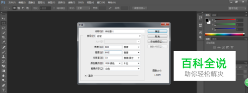 打开ps,新建一个文件,新建文件的,新建文件的大小最好是大一点,根据自己的屏幕来设置,小编设置的是800成800,如图所示,