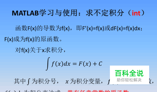 第二,MATLAB符号运算工具箱提供了int求不定积分。下面求下图中的不定积分。