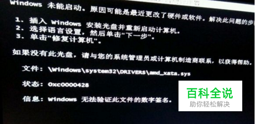 Windows7启动时提示amd_xata.sys签名验证失败