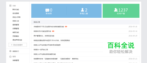在上图箭头标注的登录框中输入微信公众号的账号和密码后,点击“登录”,账号和密码输入正确后,便可进入到如下页面