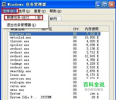 弹出“任务管理器”窗口,点击左上角的“文件”,选“新建任务(运行)”