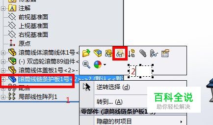 选择装配体中一零件,点击鼠标右键,如下图进行选择