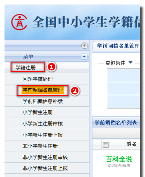 点开【学籍管理】后,点击【学前调档信息管理】。