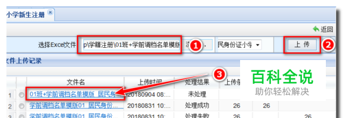 浏览填好的分班注册模板表格文件后,点击【上传】。