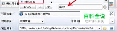 设置输出格式,不同格式的视频,其体积也是不等的。通常影响视频大小的几个因素有:视频素材,视频格式,视频相关参数(视频编码器,音频编码器,分辨率,尺寸,比特率,帧率等)。所以在移动设备支持播放的情况下,也可以通过设置格式来达到压缩视频体积的目的。比如rmvb就是一种占空间比较小的格式,点击“预置方案”后面的倒三角按钮,设置匹配的格式。