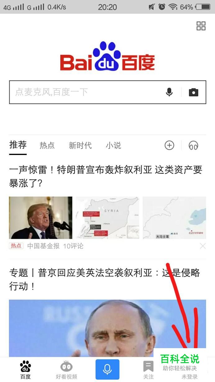 首先我们打开手机百度,在右下方找到登录按钮。