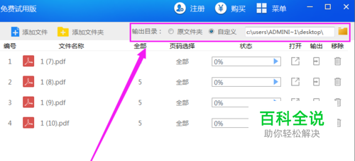 在页面的右上角“输出目录”中,选择“自定义”或者“原文件夹”为输出文件设置保存的位置。