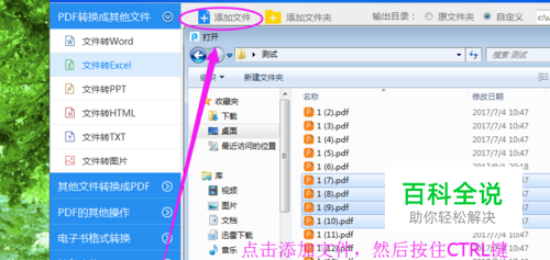 点击“添加文件”按钮,将所要转换成EXCEL的PDF格式文件添加到操作页面上等待操作,按住CTRL键可以多选择文件。
