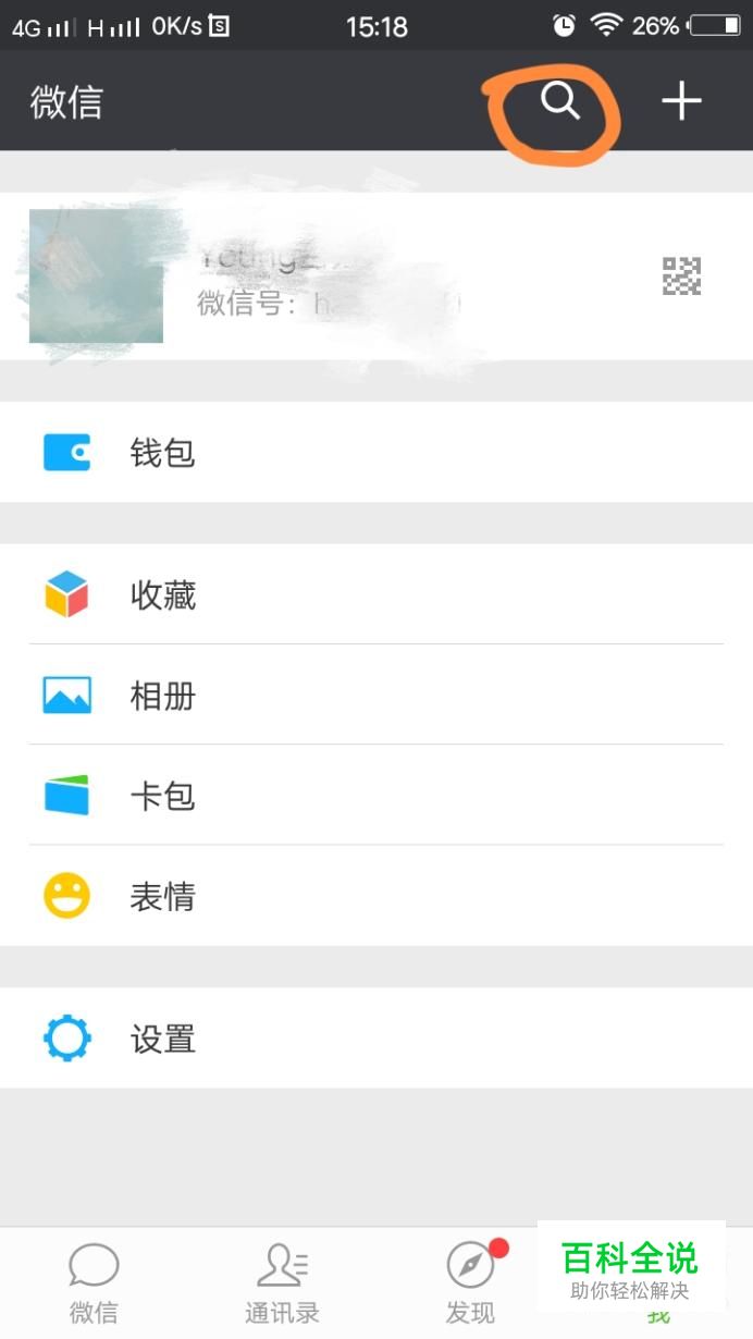 打开微信,点击右上方的放大镜形状的搜索按钮。