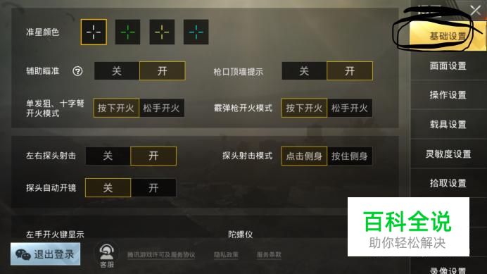 找到基础设置,选择基础设置,有准星颜色,可以选择四种颜色,根据自己的喜欢选择。