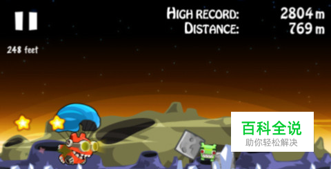 同样的,在飞行过程中我们要一路收集金币,因为滞空时间很短,而空中的辅助道具也不多,就需要玩家自动抓准时机利用画面右下方的火箭和降落伞道具了。火箭可以快速往前飞行一段距离,降落伞则可以缓慢滑行,地面上偶尔会很好运的撞到弹簧,重新被弹到高空中。总之就是想尽一切办法磨到最远的距离。另外空中还有长得像猪一样的外星生物,把它们撞飞就能得到额外加速,但如果是撞到体型很大的外星猪,有可能会降低你的速度。